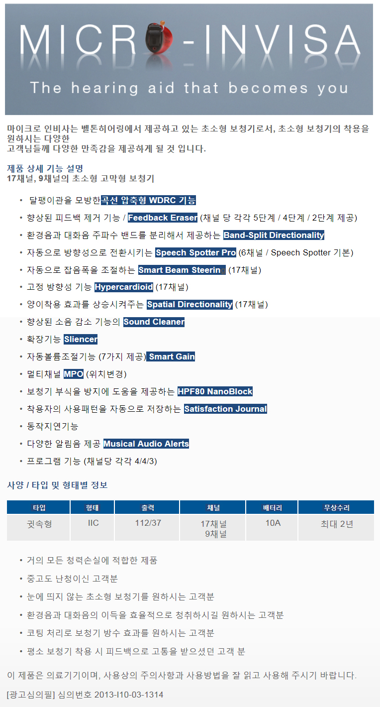 [귓속형] 인비사 (Beltone micro-Invisa)